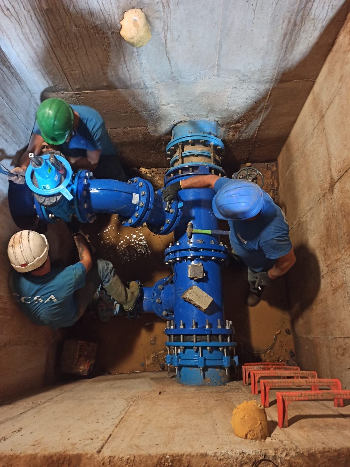 La adecuación de esta toma, que ahora queda modernizada, se ha realizado en la tubería DN 350 en dos intervenciones: una para el equipamiento de la zona a tratar, y otra para trabajar directamente en la toma de emergencia. Estos trabajos, necesarios para aumentar las garantías de abastecimiento de agua potable en alta, se planifican en horario nocturno para minimizar al máximo las posibles molestias.